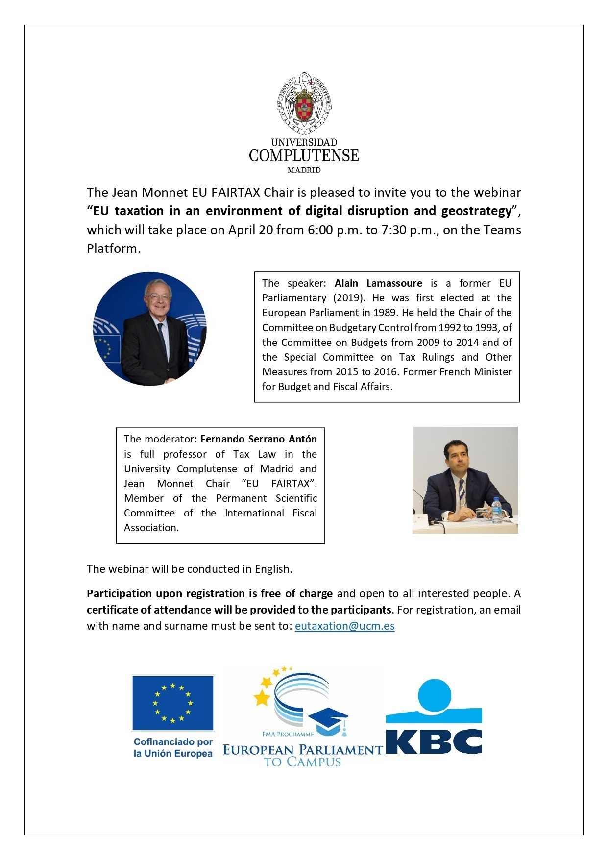 Webinar – SPAIN – COMPLUTENSE UNIVERSITY OF MADRID – Alain Lamassoure